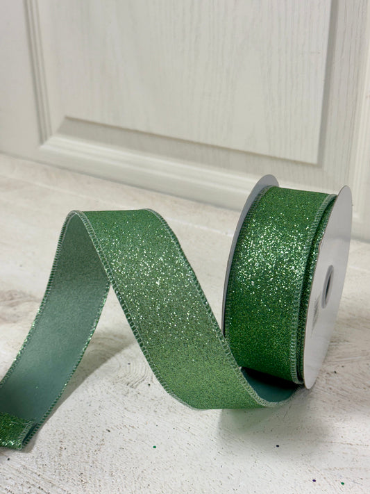 1.5 Inch By 10 Yard Sage Green Shimmer Glitter Ribbon