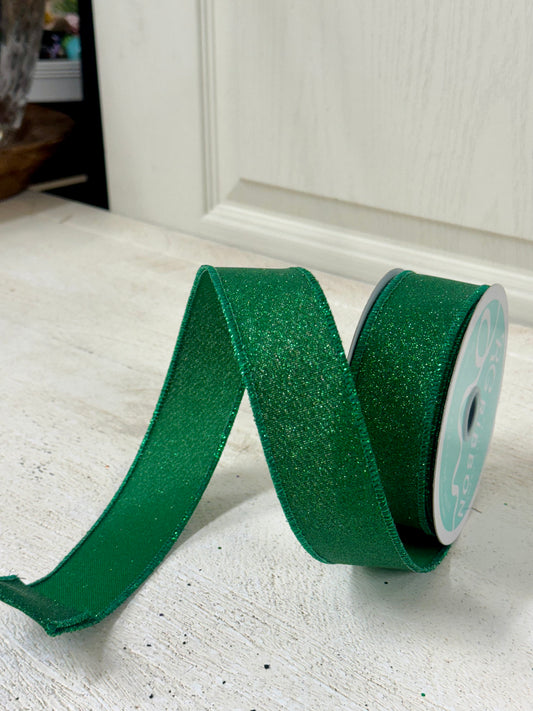 1.5 Inch By 10 Yard Emerald Green Fine Glitter Ribbon