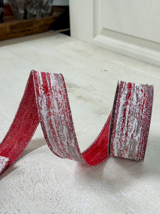 1.5 Inch By 10 Yard Red White Silver Metallic Streaks Ribbon