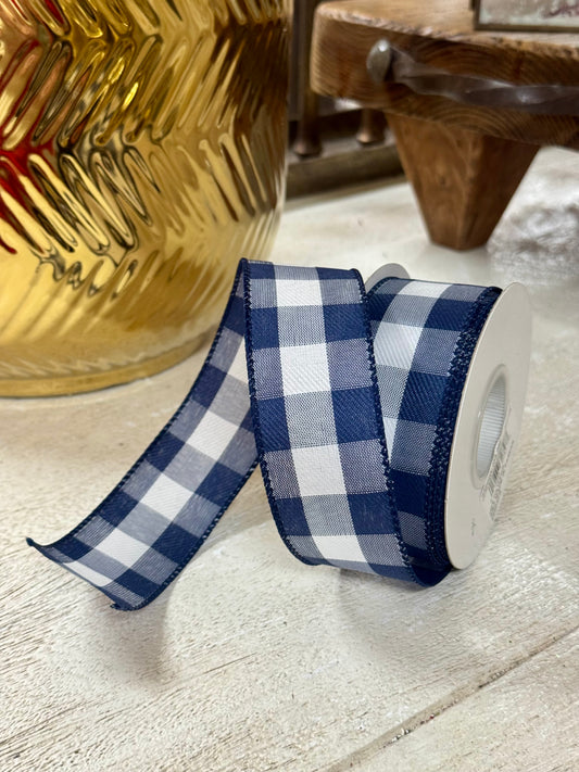 1.5 Inch By 10 Yard Navy Blue Celine Check Plaid Ribbon