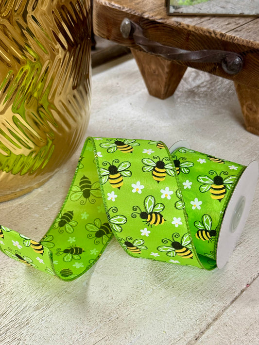 2.5 Inch By 10 Yard Lime Green Bumble Bees Ribbon