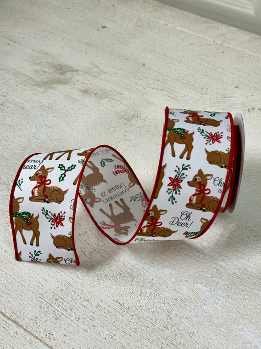 2.5 Inch By 10 Yard Oh Deer Christmas Ribbon