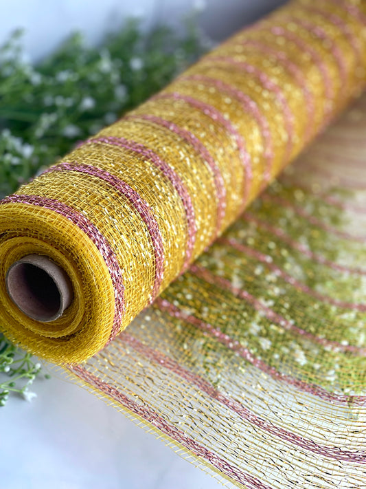 20" x 10 YDS Designer Netting Gold with Pink Stripes
