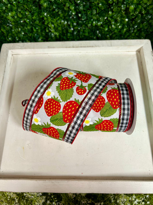 4 Inch By 10 Yard Strawberry Check Ribbon