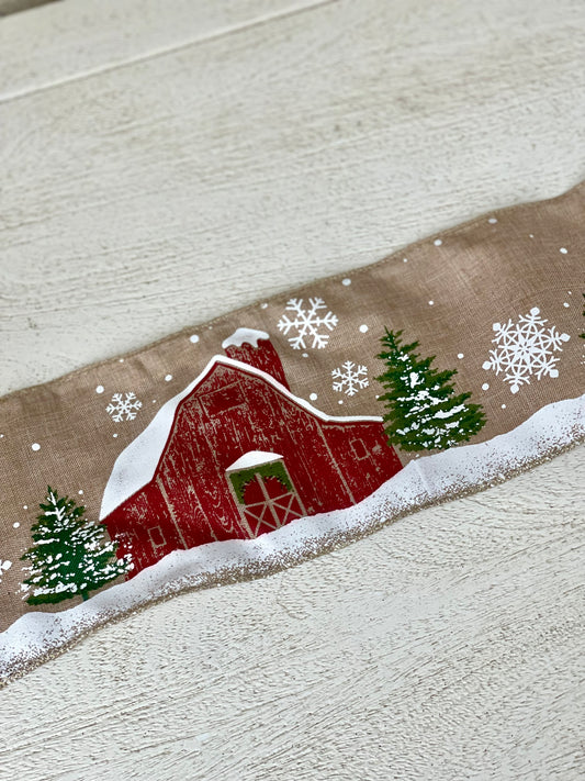 5 Inch By 10 Yard Snow Barn Scene Ribbon