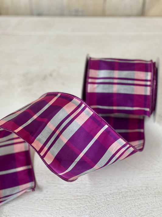 4 Inch By 10 Yard Purple Plaid Elegance Dupioni Ribbon