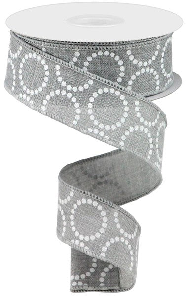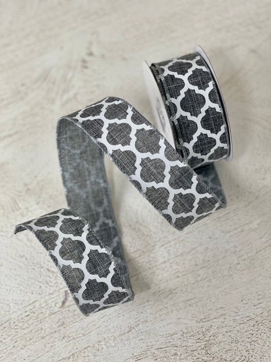 1.5 Inch By 10 Yard Grey Linen With Big White Lattice Ribbon