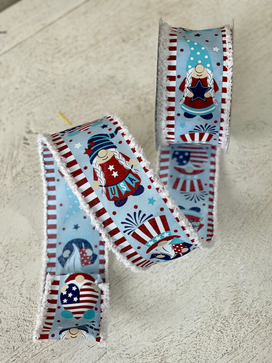 2.5 Inch By 10 Yard Patriotic Gnomes Frayed Edge Ribbon