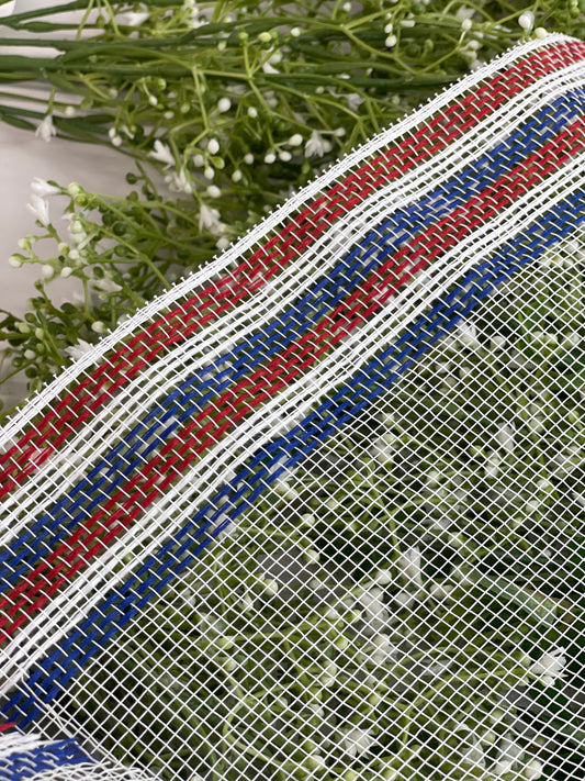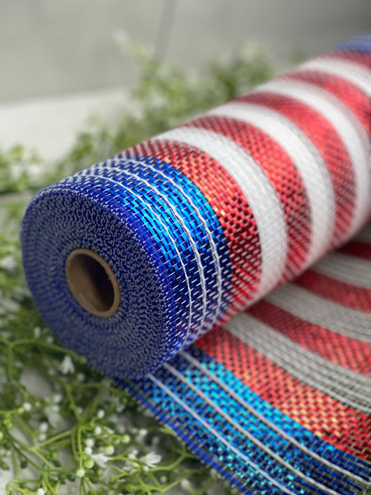 10.25 Inch by 10 Yard Red White And Blue Striped Metallic Netting