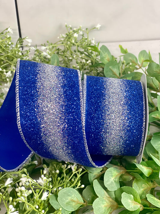2.5 Inch By 10 Yard Royal Blue And Silver Gradient Glitter Ribbon