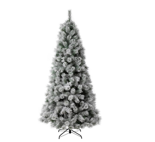 Glitzhome 7.5 ft. Pre-Lit Snow Flocked Artificial Spruce Christmas Tree with 650 Warm White Lights Open Box