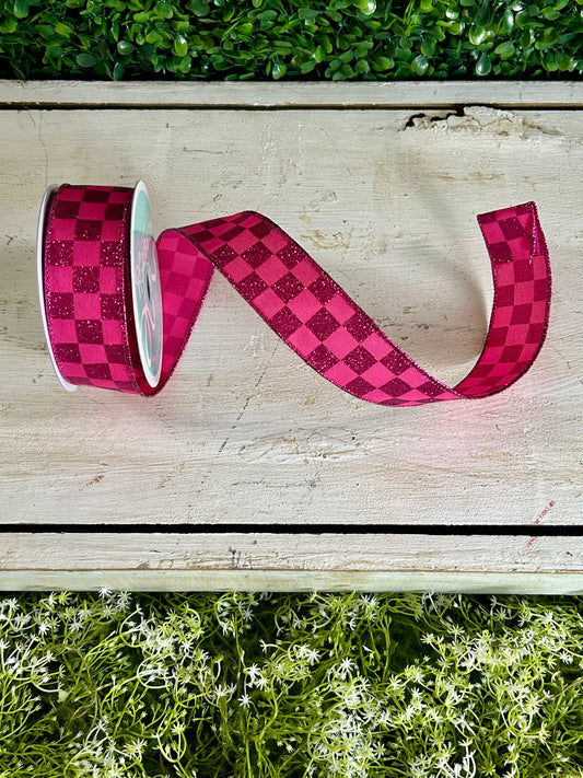1.5 Inch By 10 Yard Hot Pink Glitter Check Ribbon