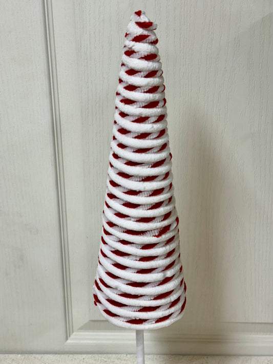 21 Inch Red And White Tinsel Glitter Twisted Cone Tree