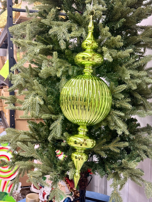 14 Inch Shiny Silver Vertical Stripe Ball Finial Ornament
