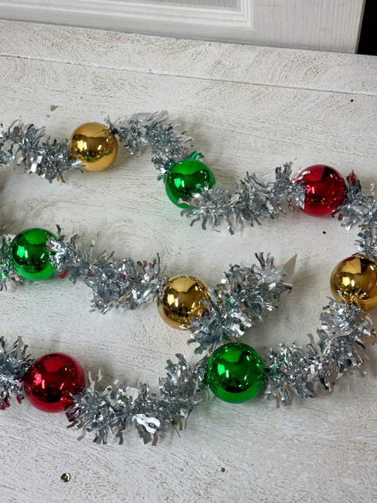 60 Inch Silver Red Emerald Gold Ball Tinsel Garland