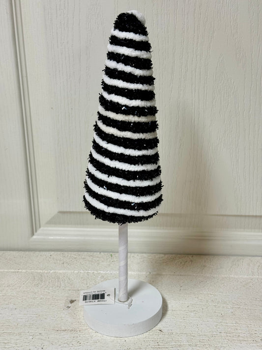 13.25 Inch Black And White Tinsel Glitter Twisted Cone Tree