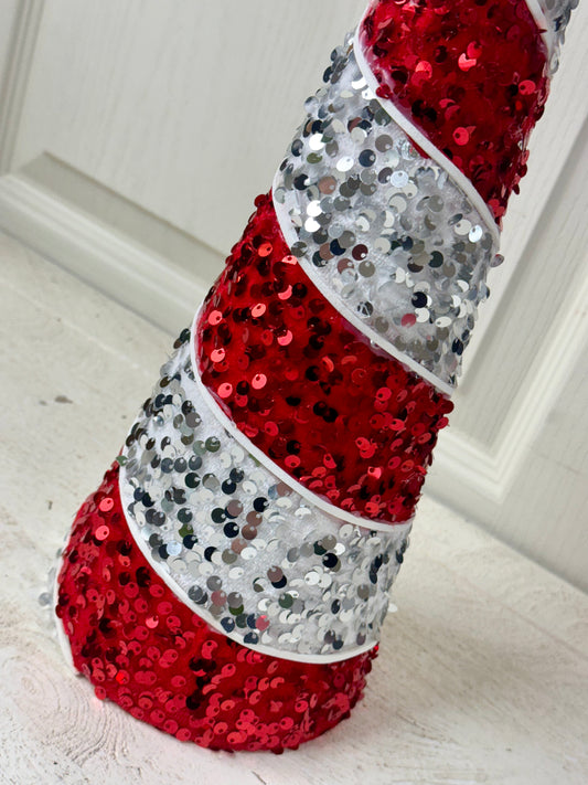 19.75 Inch Red And White Sequin Swirl Cone Tree
