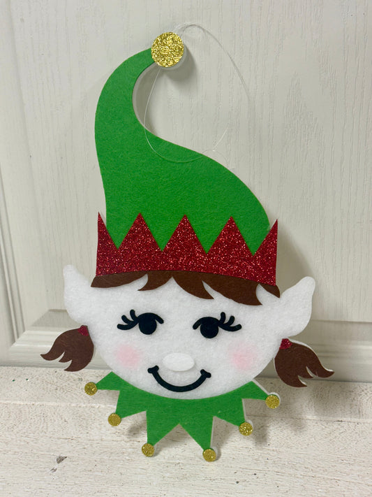 12.5 Inch Green And Red Felt Glitter Girl Face