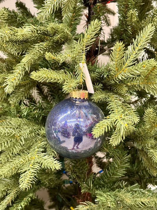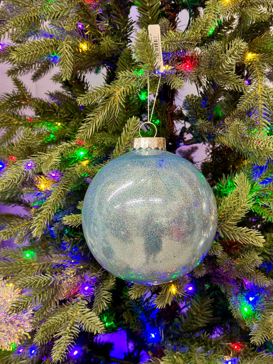 6 Inch Smoke Blue Glitter Lacquer Ornament Ball