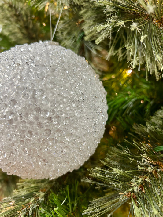 4.5 Inch White Beaded Ball Ornament