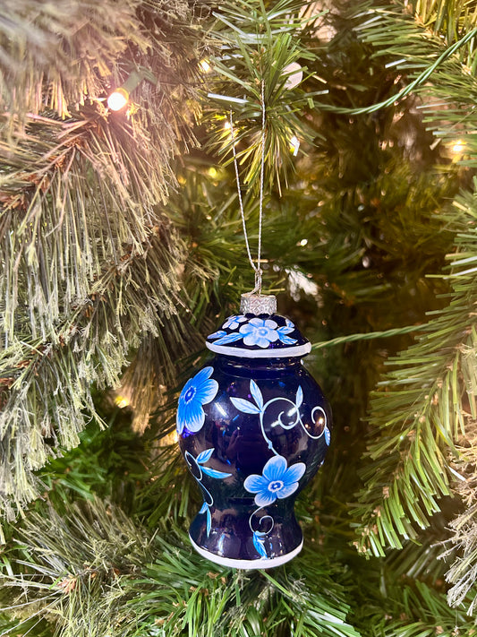 4.5 Inch White And Blue Floral Glass Finial Ornaments Two Styles