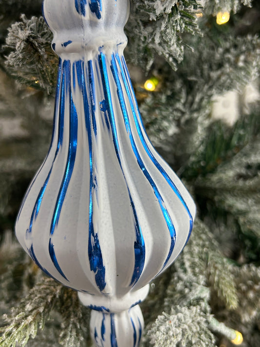 7.75 Inch Blue And White Stripe Finial Ornament