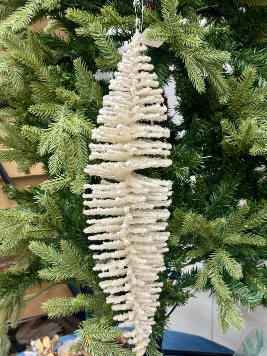 19.5 Inch White Iridescent Glitter Finial Ornament