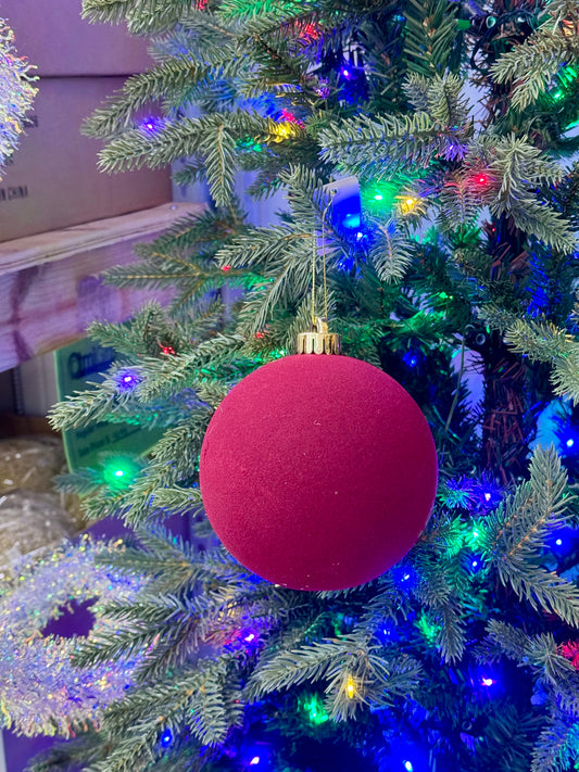 5 Inch Burgundy Smooth Flocked Ornament Ball