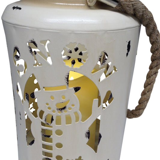 White Metal Snowman Lantern With Lighted Candle On The Inside