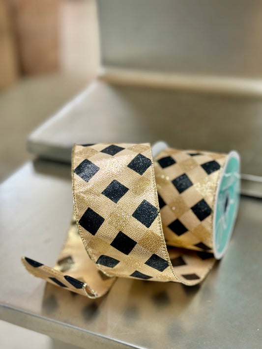 2.5 Inch By 10 Yard Gold And Black Diamond Check