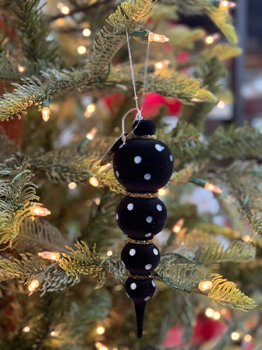 8 Inch Beautifully Black Felt Finial Ornament With White Polka Dots