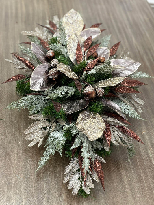 18.25 Inch Copper Wired Metallic Magnolia Leaf Spray