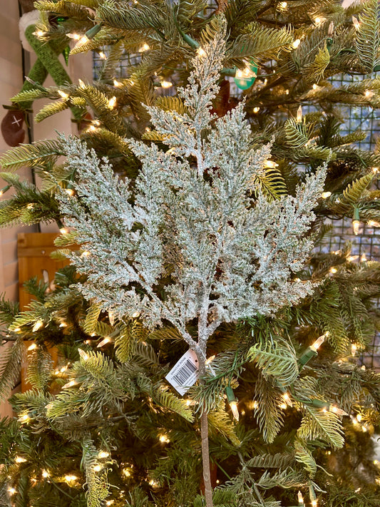 25 Inch Flocked Snow Glitter Norfolk Pine Spray