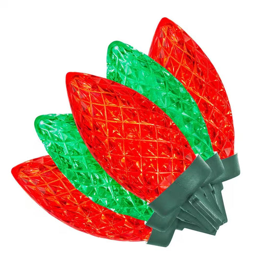 100 Count Red And Green Faceted C9 LED Lights Open Box
