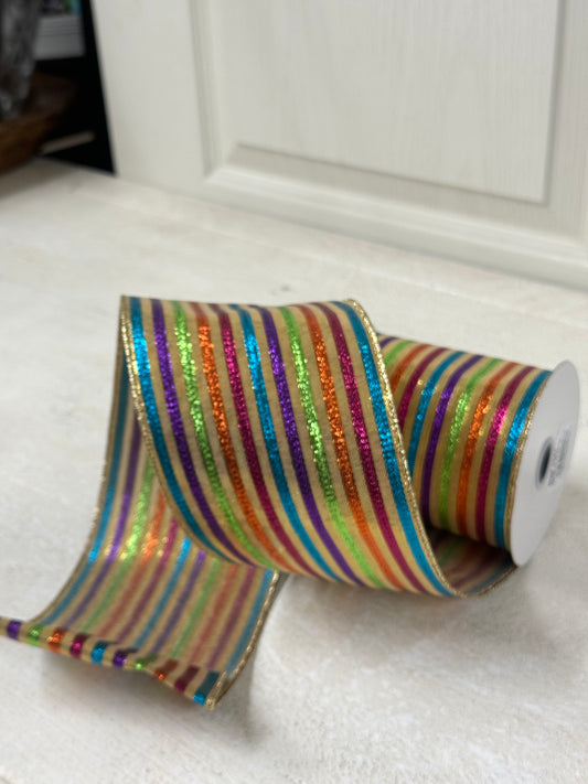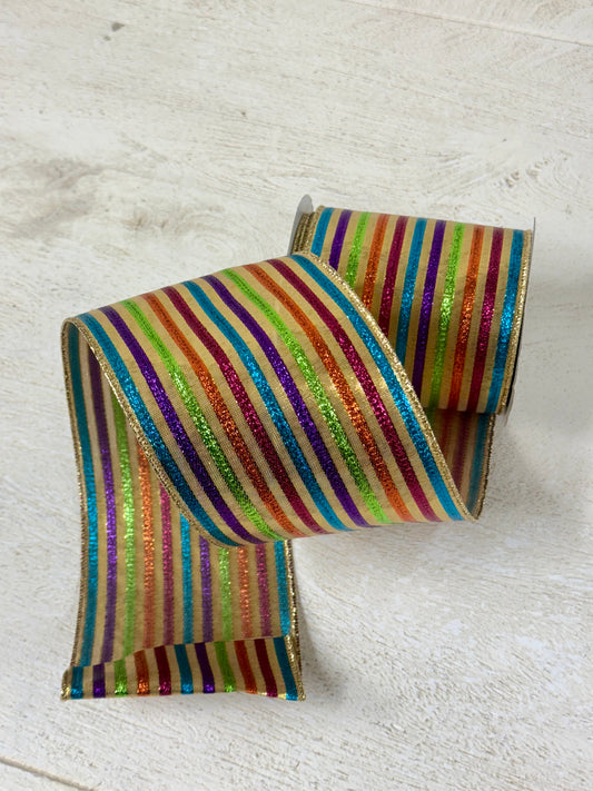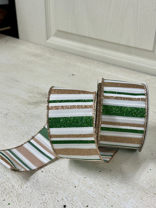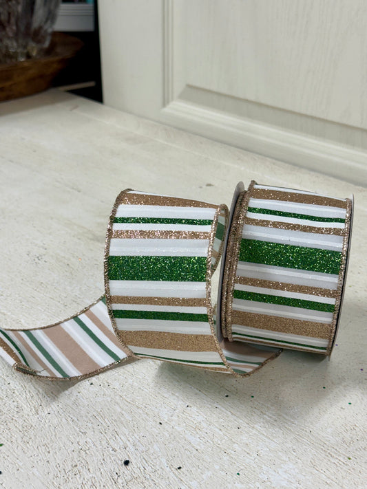 2.5 Inch By 10 Yard Red And Silver Large Glitter Stripe Ribbon