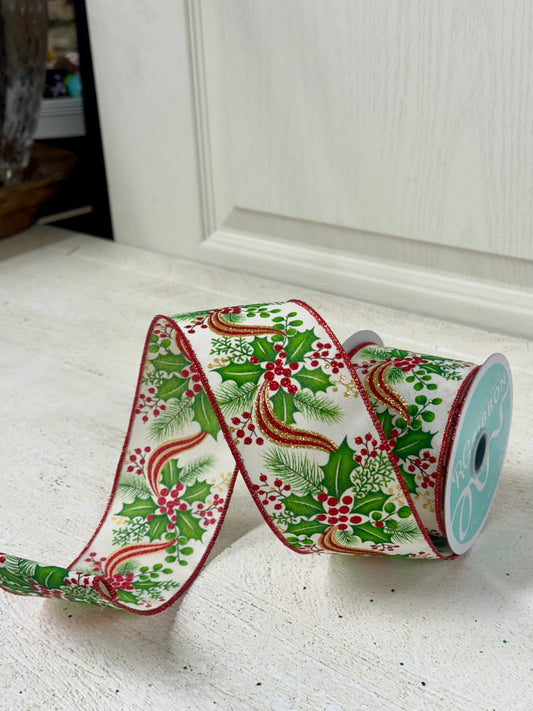 2.5 Inch By 10 Yard Red Emerald And Gold Deluxe Wavy Foral Ribbon