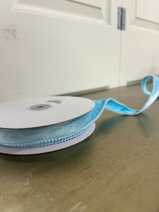 7/8 Inch By 10 Yard Ice Blue Deluxe Velvet With Satin Backing
