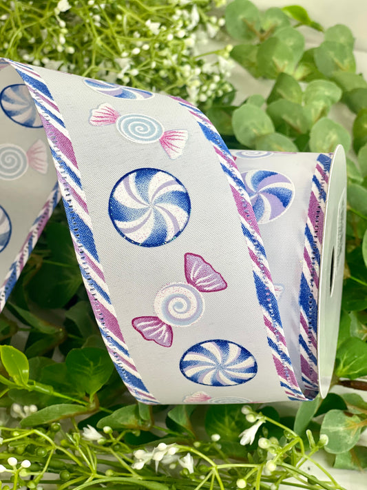 2.5 Inch Blue Lavender Pink Candy Christmas Ribbon