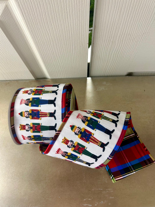 4 Inch By 5 Yard Nutcracker With Plaid Backing Ribbon
