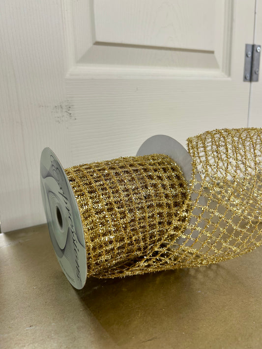 4.25 Inch By 10 Yard Gold Tinsel Mesh Ribbon