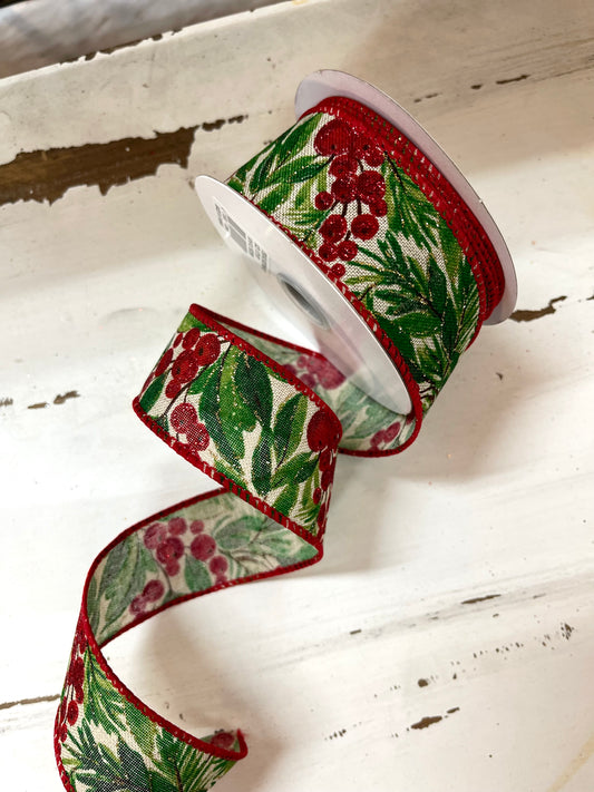 Natural Linen Ribbon With Red Berries