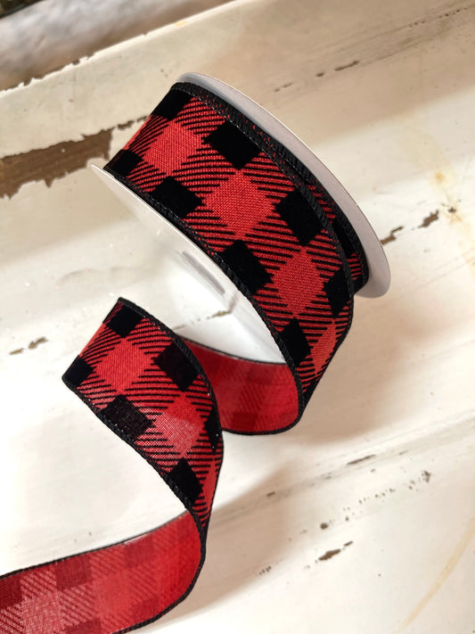 1.5 Inch Ribbon With Red and Black Plaid