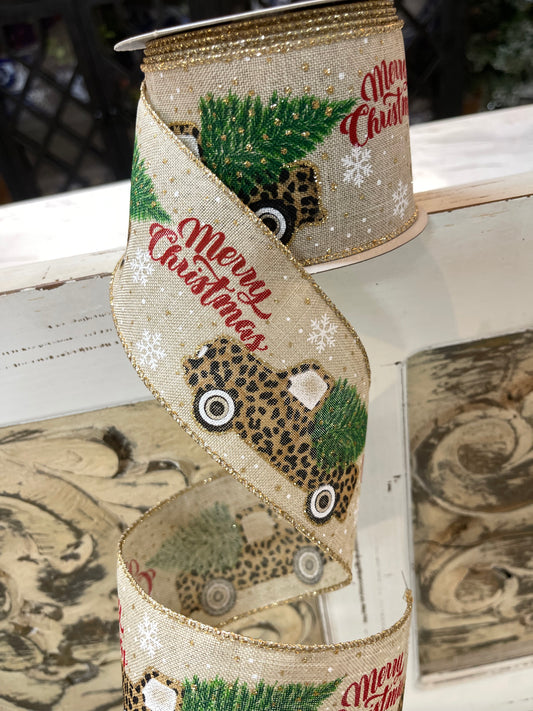2.5 Inch Ribbon Cream Background With Leopard Truck