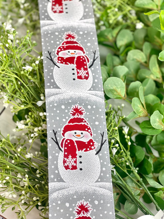 2.5 Inch Grey Ribbon With Cheerful Snowman