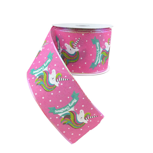 Pink Linen Unicorn Merry Christmas Ribbon