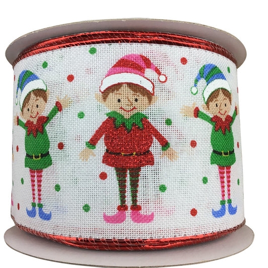 White Linen Pink Blue Green Red Happy Elves Ribbon