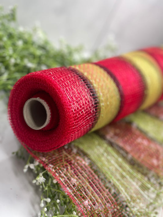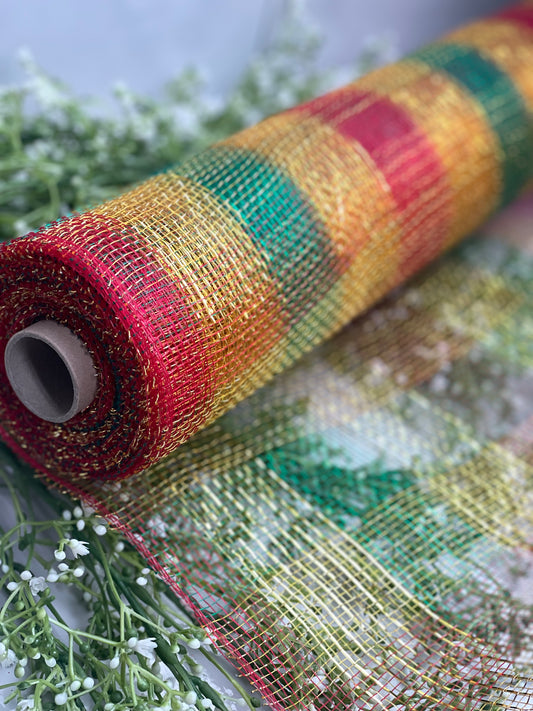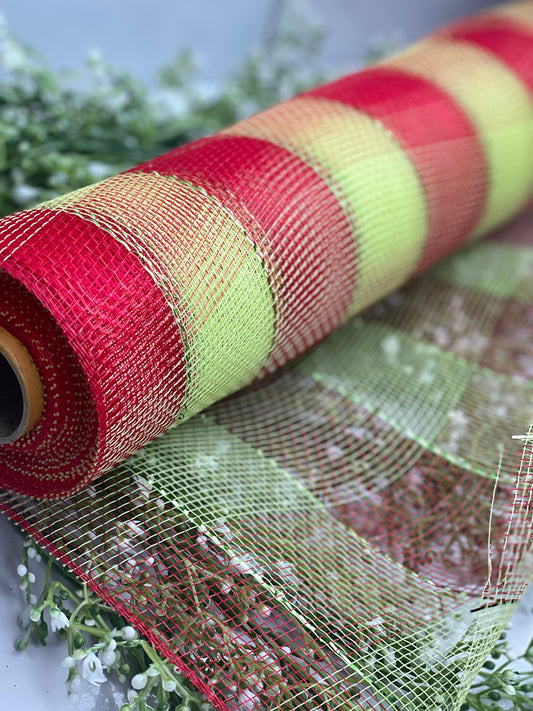 20 Inch by 10 Yards Designer Netting Plaid Red Apple with Lime Glamour Foil