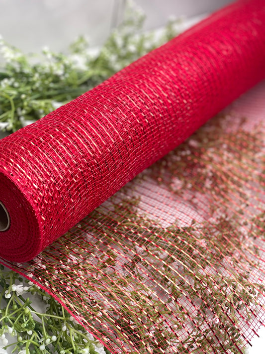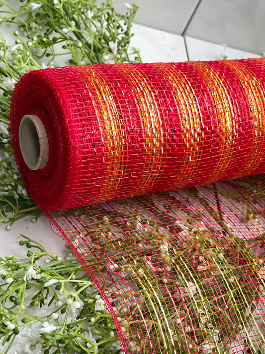 10 Inch by 10 YDS Designer Netting Glitz Red with Gold Glamour