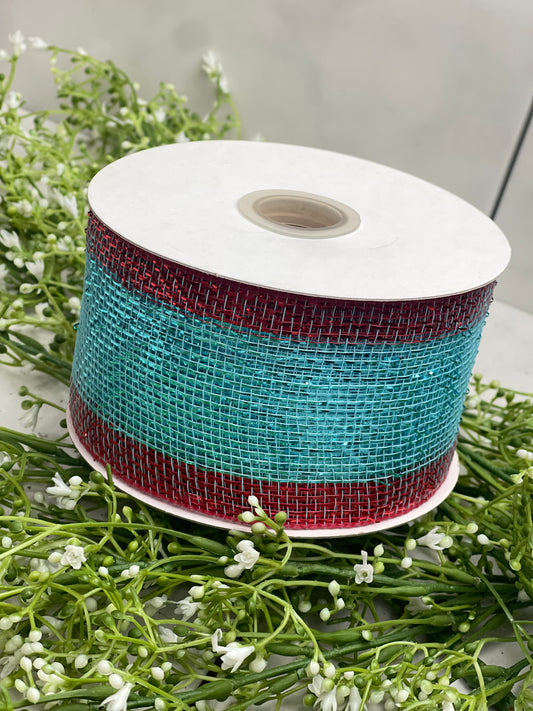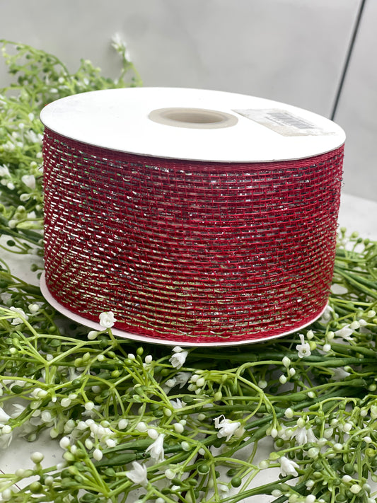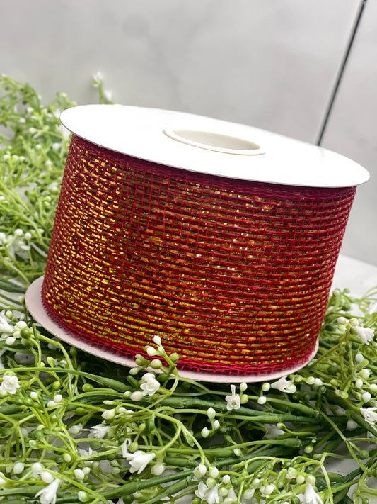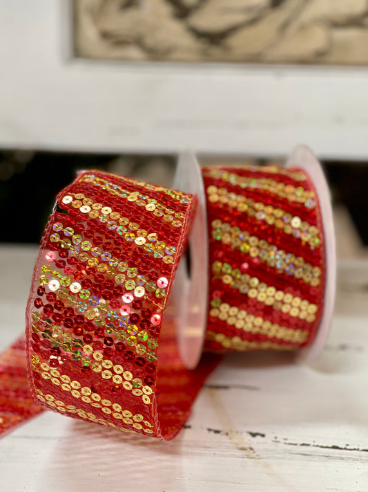 2.5 Inch By 10 Yards Wired Red and Gold Sheer Sequin Ribbon