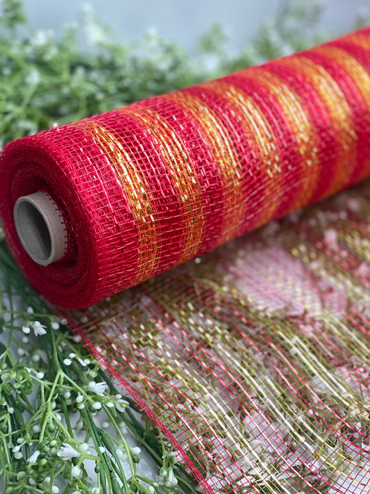 3 Inch by 20 Yards Designer Netting Red With Gold Glamour